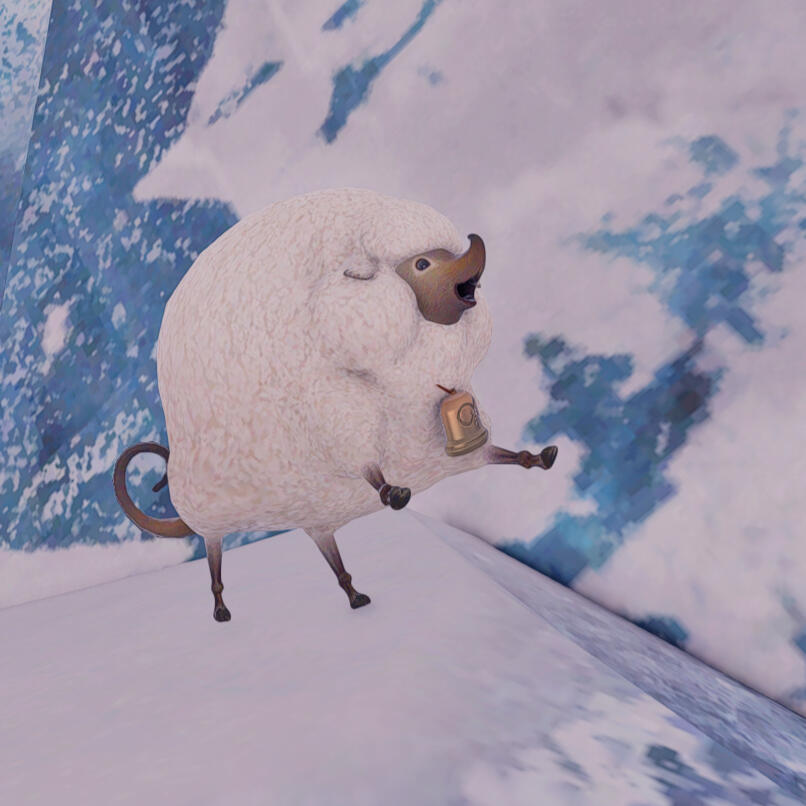 Doudou is a shy karakul of Falcon's Nest who does not like to venture far from the settlement's walls. She can be encouraged with a fresh green cabbage.