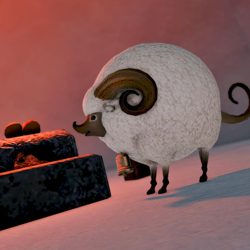 A mischievous and very plush ram. All Péché wants to do is climb high things. Do not let Péché climb high things.